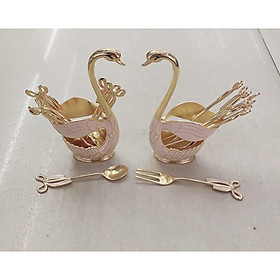 Combo hai bộ giỏ thiên nga kèm 6 thìa, 6 dĩa ăn hoa quả