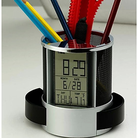 Hộp đựng bút có đồng hồ, lịch kỹ thuật số đa năng - hàng chính hãng
