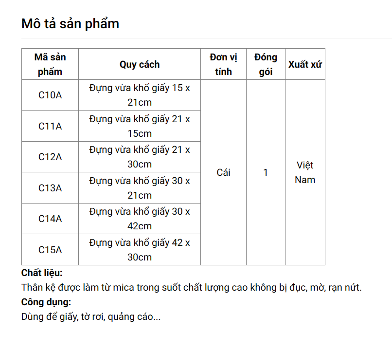Kệ nhiều giấy treo tường mica Enter C15A 43x31.5cm A3 ngang, đáy 3mm