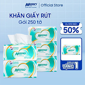 MUA 5 TẶNG 1 Combo 5 gói khăn giấy rút lụa Nano 250 tờ 2 lớp, giấy ăn cao cấp, không chất tẩy trắng, an toàn cho người dùng