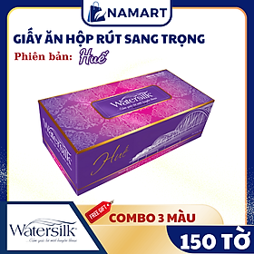 Combo 3 Hộp Khăn lau mặt Watersilk 3 miền 150 tờ/ Hộp x 2 lớp - 100% Bột giấy nguyên sinh - Hàng chính hãng.