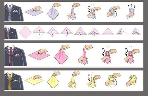 Có rất nhiều kiểu gấp khăn Pocket! Ôi nó dễ lắm mà, như gấp giấy Origami, dễ cực kỳ luôn ý. Phần này chắc không cần phải hướng dẫn các bạn nữa. 1 là dễ 2 là khi các bạn biết đến Pocket tức các bạn cũng là những người khéo léo, tinh tế và chỉn chu rồi, gấp khăn là việc quá giản đơn!