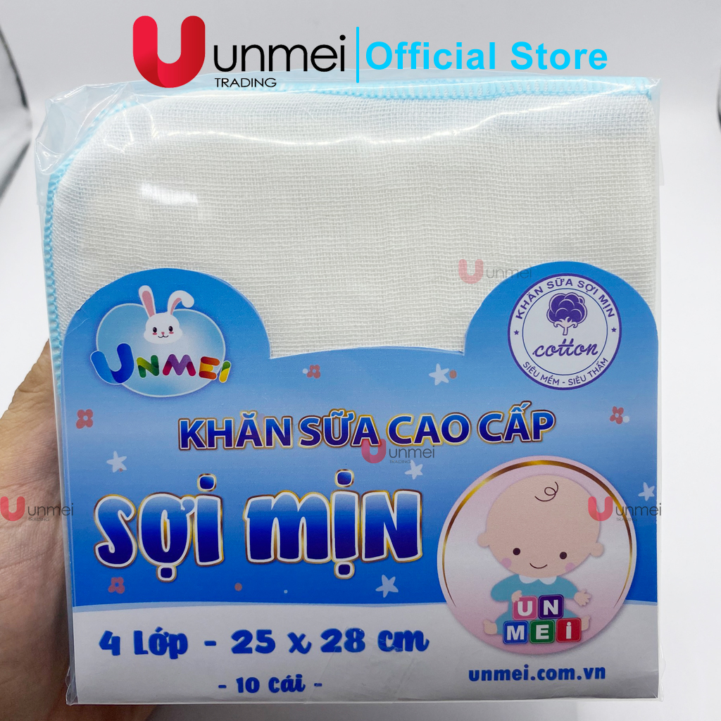 - Khăn sữa Unmei 100% cotton cao cấp tiêu chuẩn xuất Nhật, dành cho trẻ sơ sinh. An toàn cho bé, được các mẹ trên toàn quốc tin dùng. - Đường viền của khăn cuốn biên bằng sợi chỉ tơ mềm mại an toàn cho bé.
