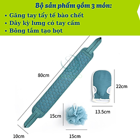 Bộ Găng Tẩy Da Chết + Dây Kỳ Lưng + Bông Tắm Bộ Chăm Sóc Da Body Chuyên Sâu Combo Tắm Sạch - Da Mịn 3 Trong 1