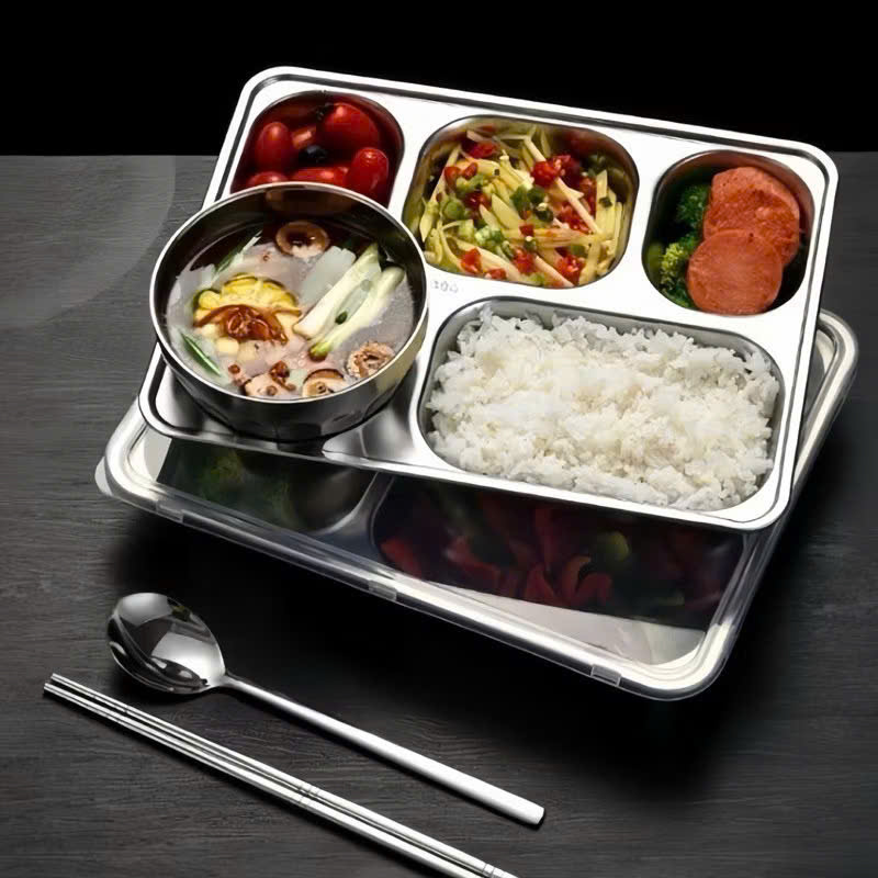 Khay Đựng Cơm Inox Cao Cấp 5 Ngăn Sâu Lòng Hàn Quốc, Khay Đựng Cơm Văn Phòng, Xí Nghiệp Đảm Bảo Vệ Sinh