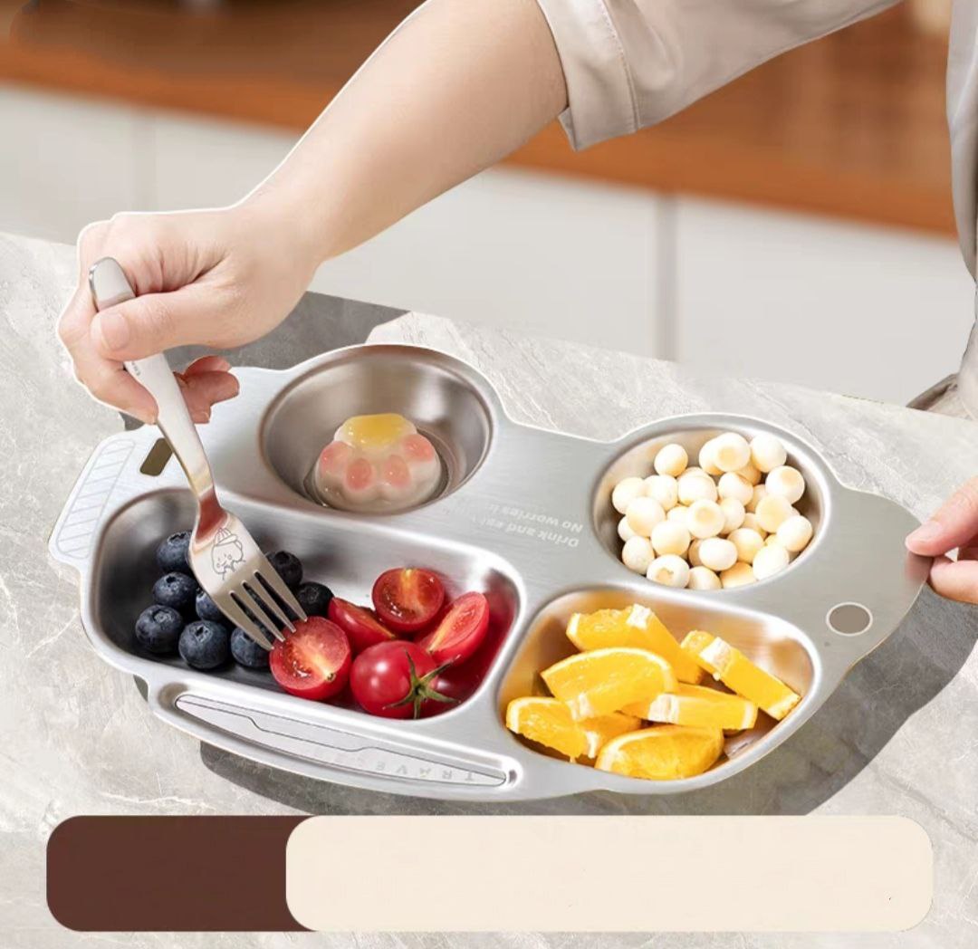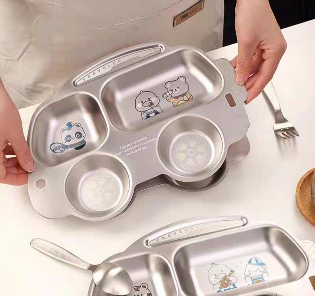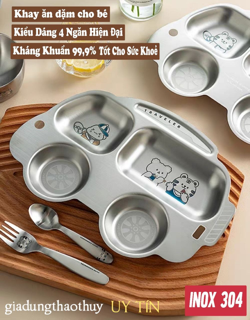 KHAY INOX 304 CAO CẤP KHAY ĂN DẶM TRAVELER 4 NGĂN DÀNH CHO BÉ ĐÁNG YÊU - KHÁNG KHUẨN 99,9%