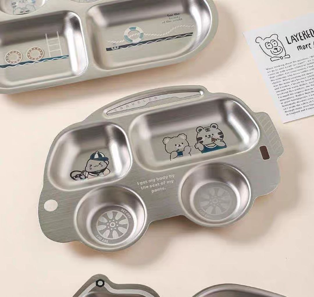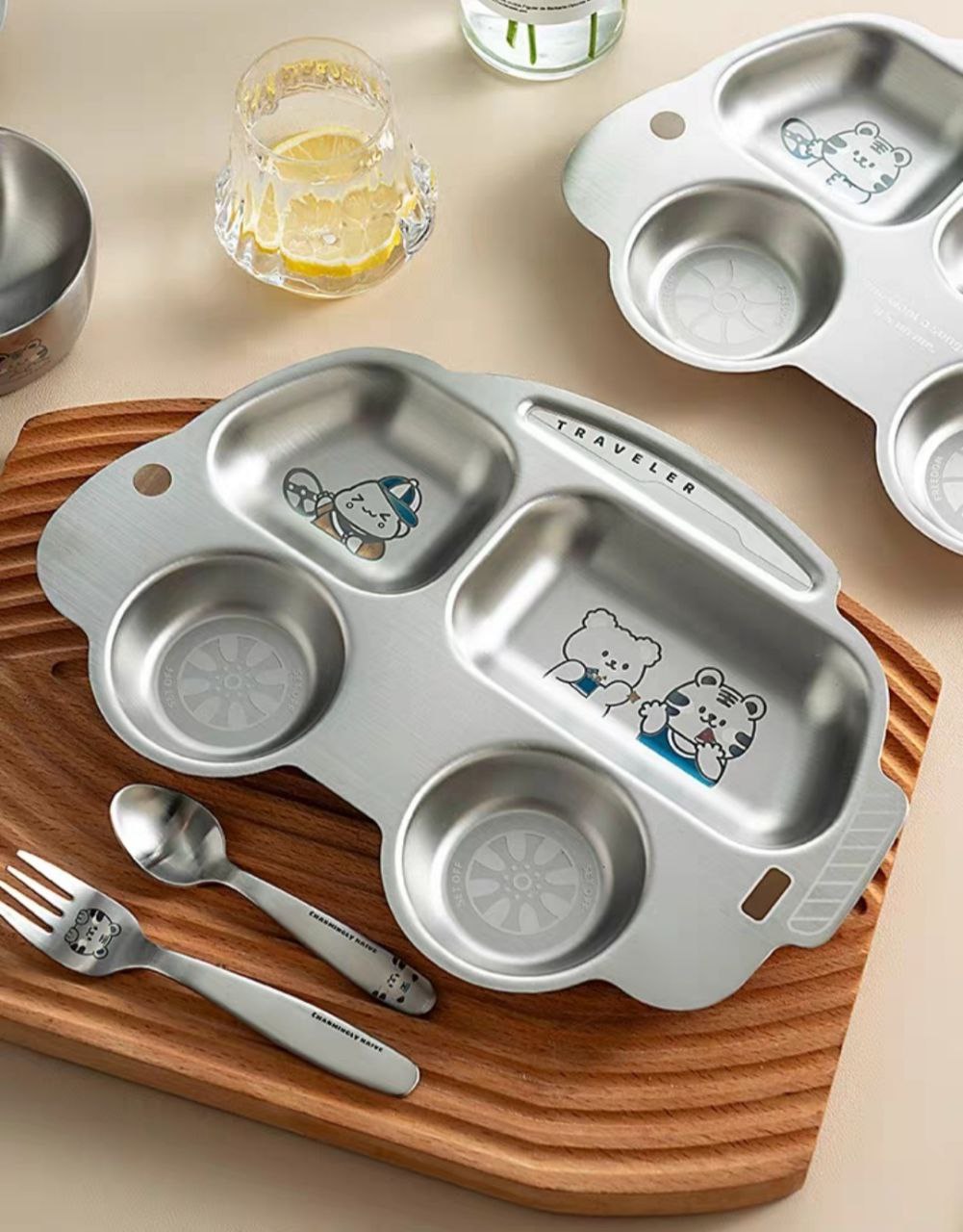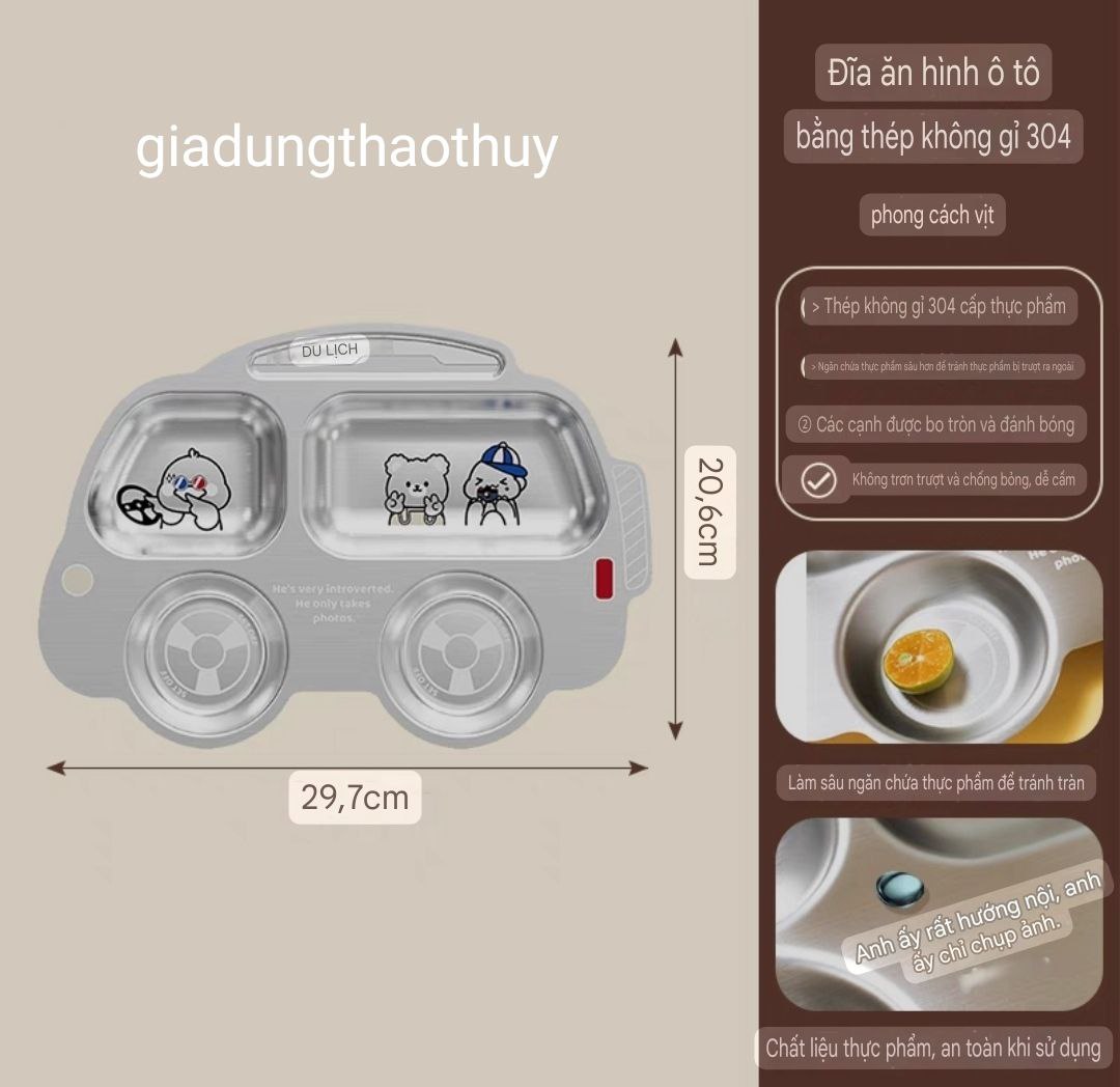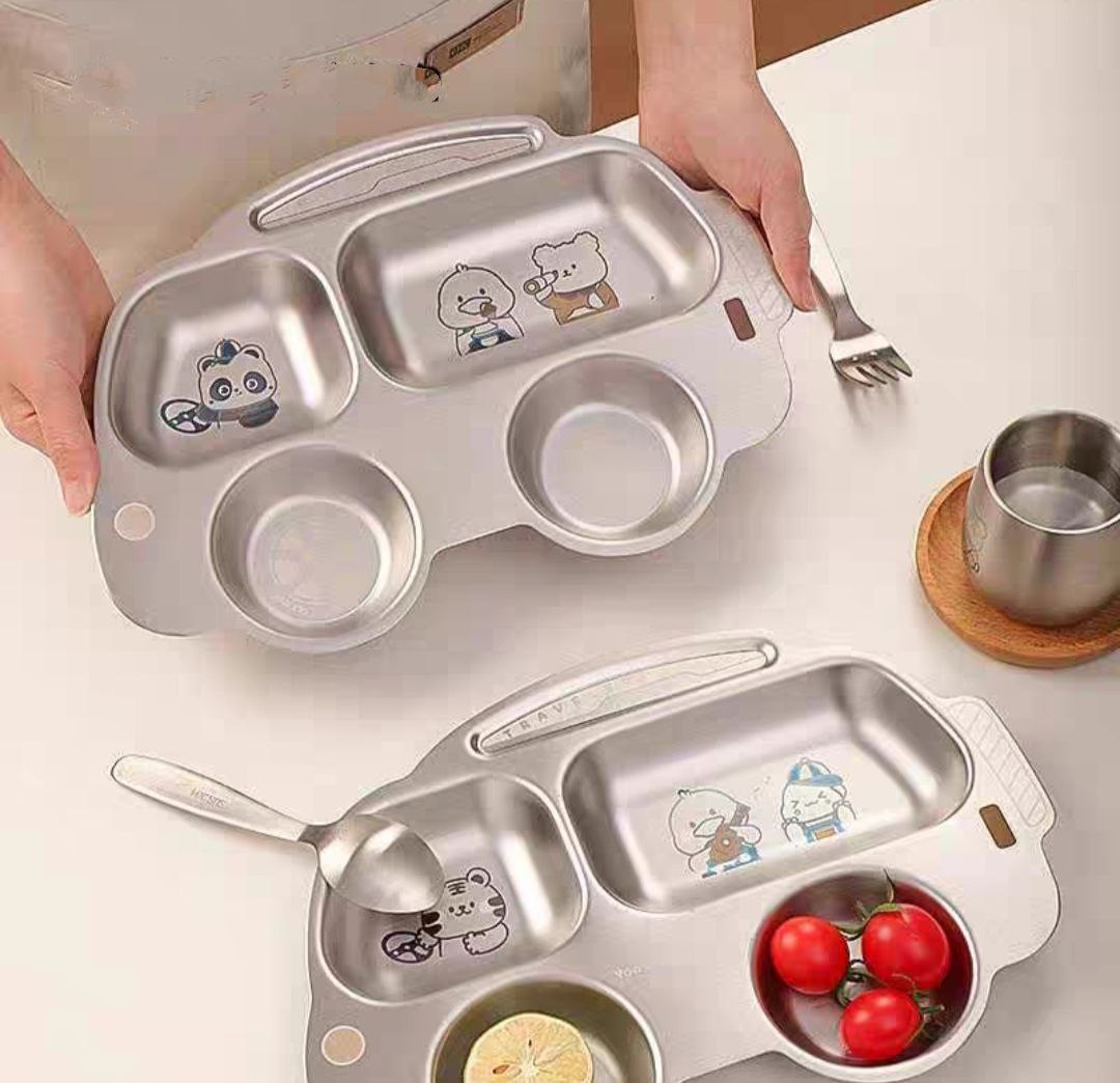 KHAY INOX 304 CAO CẤP KHAY ĂN DẶM TRAVELER 4 NGĂN DÀNH CHO BÉ ĐÁNG YÊU - KHÁNG KHUẨN 99,9%