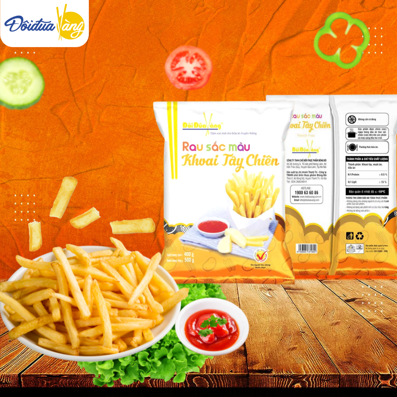 Món khoai tây chiên nhà Đôi Đũa Vàng sẽ ngon hơn khi bạn thưởng thức cùng tương ớt hoặc tương cà. Bảo quản sản phẩm ở nhiệt độ ≤ - 18 độ C