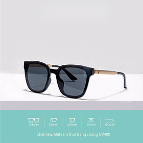 Kính râm nam nữ Mắt vuông càng kim loại thời trang