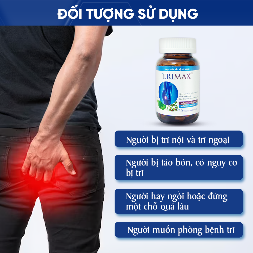 Đối tượng sử dụng Liệu Trình Hỗ Trợ Bệnh Trĩ ( 3 Hộp Viên Uống + 1 Kem Bôi Hỗ Trợ Co Thắt Búi Trĩ Trimax)