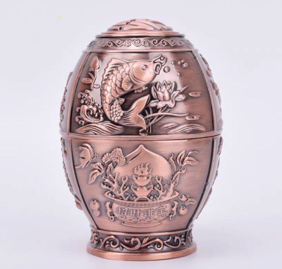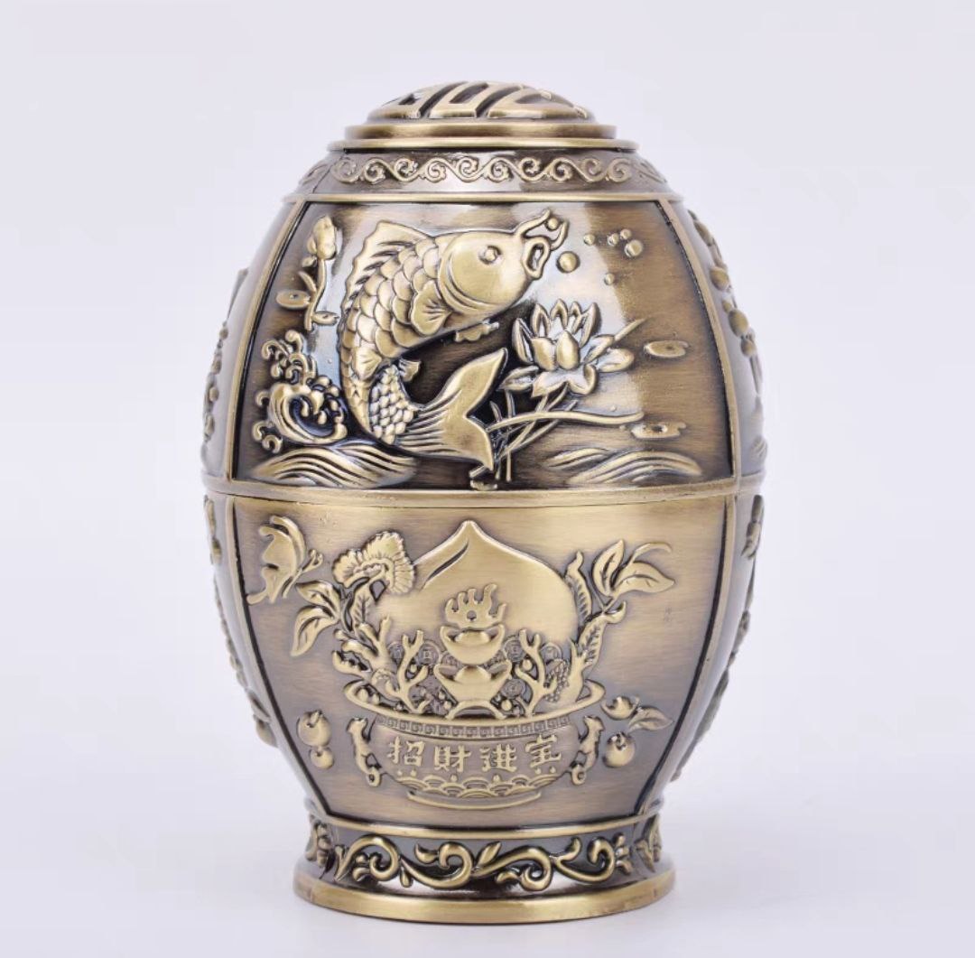 LỌ ĐỤNG TĂM ĐỒNG GIẢ CỔ HÌNH LÂU ĐÀI