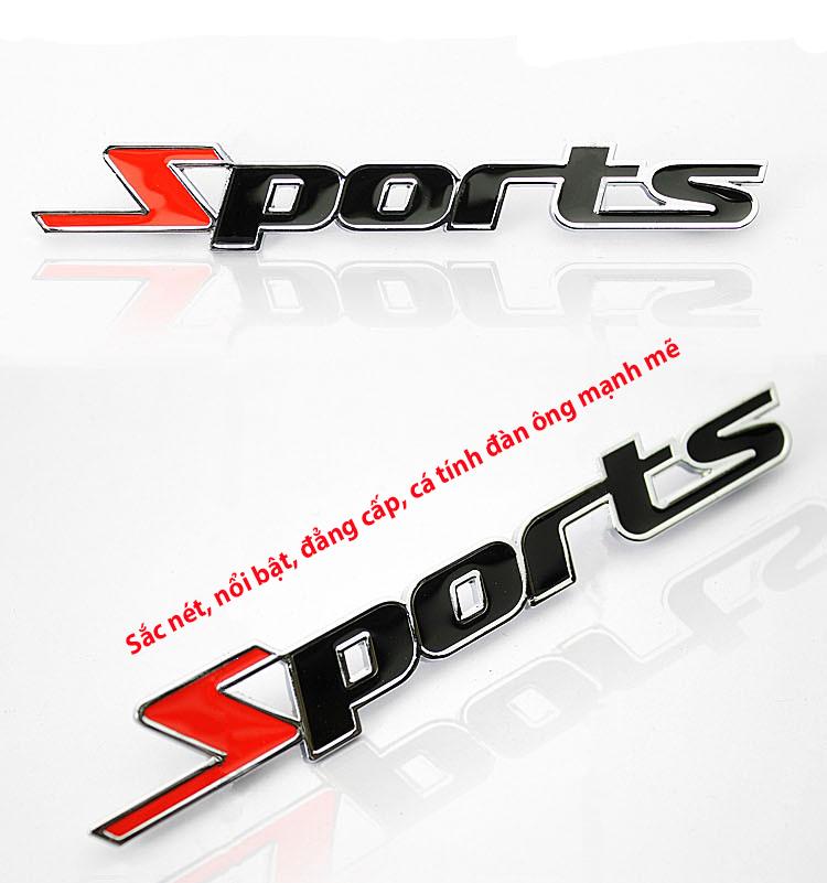 Logo kim loại chữ nổi SPORTS dán ô tô