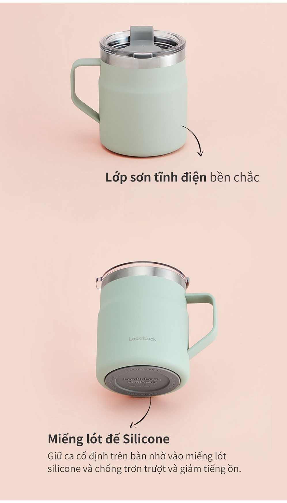 Ca nước giữ nhiệt LocknLock Metro Mug với lớp sơn tĩnh điện bền chắc và chất liệu thép không gỉ hợp vệ sinh