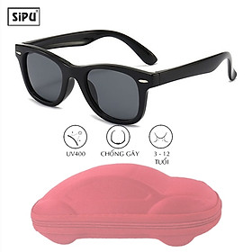 Mắt Kính Trẻ Em SiPU Chính Hãng MK02 Đen Cao Cấp Chống UV400 + Chống gãy Cho Bé Trai Bé Gái (Tặng Kèm Hộp Đựng Kính Hình Ô Tô)
