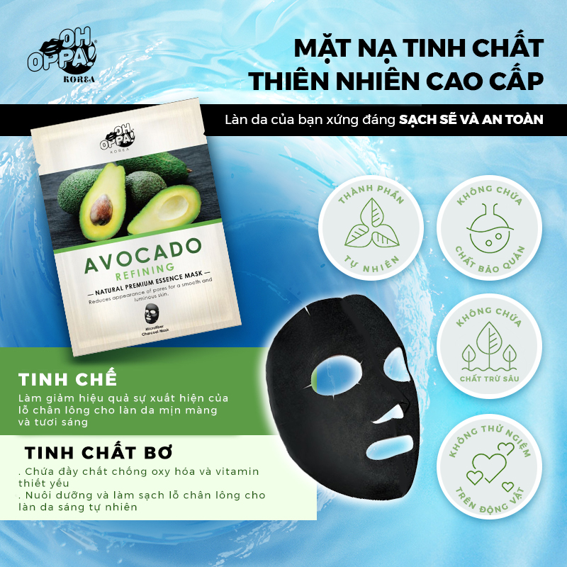 [50K VOUCHER] Combo 10 miếng mặt nạ cao cấp Hàn Quốc chiết xuất bơ giúp mịn và sáng da, mang lại cảm giác tươi trẻ, xóa mờ vết thâm OH OPPA (25ml/miếng)