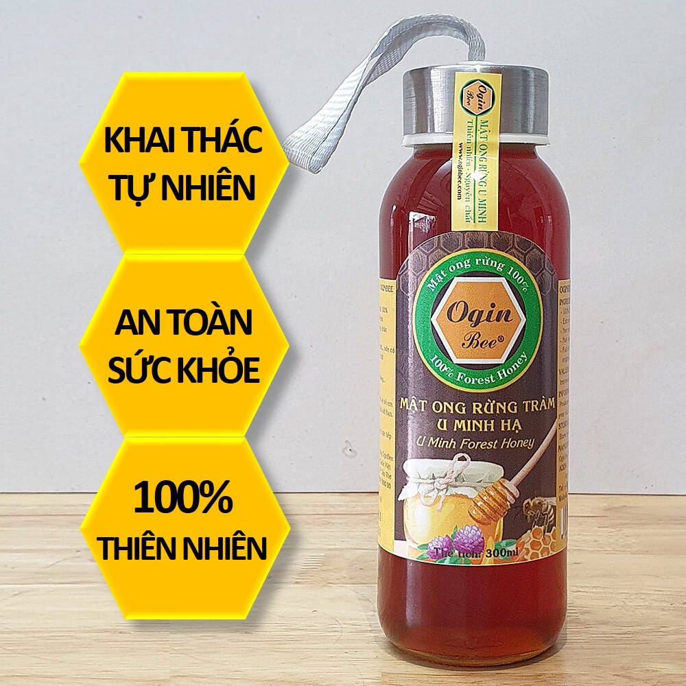 Mật ong rừng U Minh, Khai thác CHUẨN THIÊN NHIÊN 100%, Chai thủy tinh 300ml, OGINBEE
