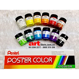 Màu Postercolor Pentel Hộp 12 màu 30ml