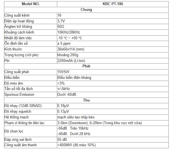 Máy bộ đàm KBC PT-186 (hàng chính hãng)