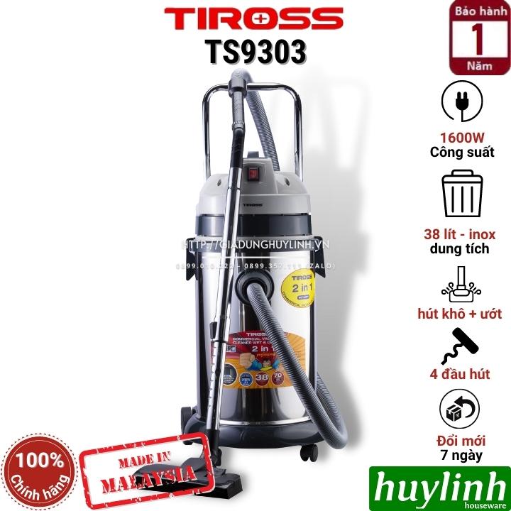 Máy hút bụi công nghiệp khô và ướt Tiross TS9303 - dung tích 38 lít - 1600W - Sản xuất tại Malaysia - Hàng chính hãng