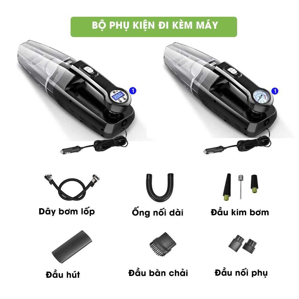 Máy hút bụi kèm máy bơm lốp ô tô máy bơm lốp ô tô 12V có đèn pin