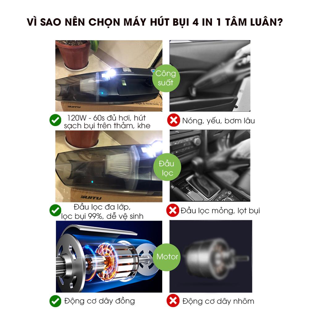 Máy hút bụi kèm máy bơm lốp ô tô Tâm Luân, máy bơm lốp ô tô 12V có đèn pin