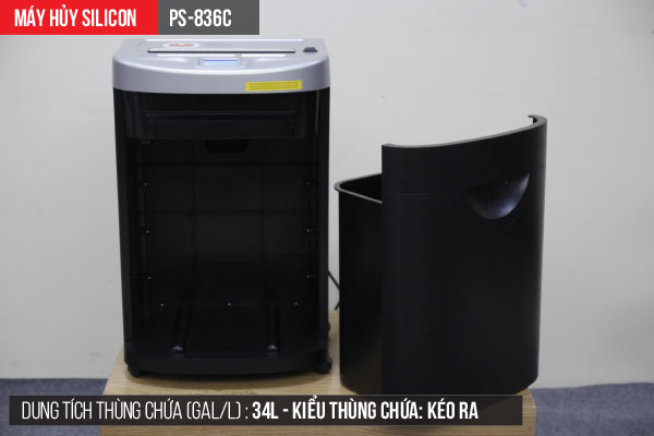 Bên ngoài vỏ họp Máy hủy tài liệu Silicon PS-836C