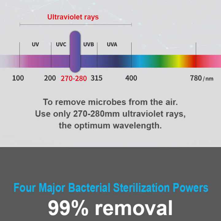 - Đèn led khử trùng bằng tia cực tím UVC, diệt khuẩn trong vòng 49 giây, loại bỏ tới 99.9% các loại Virus.