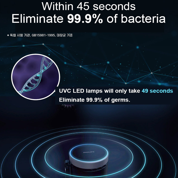 - Sử dụng công nghệ UVC LED của Philips, không có ozone, không giải phóng thủy ngân