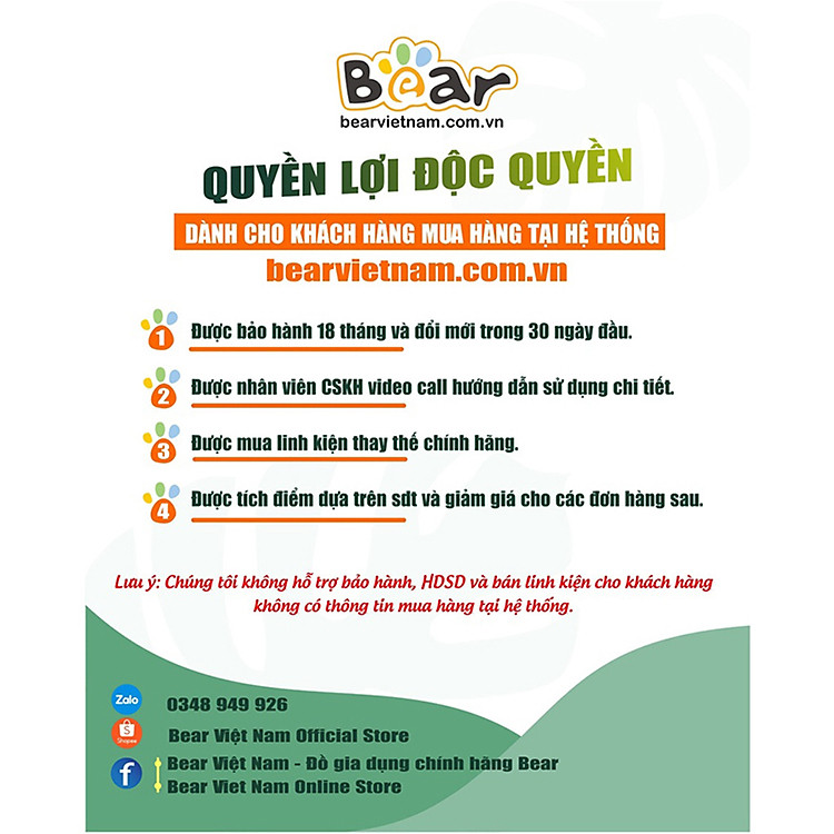 – Chất liệu an toàn bền bỉ: Khoang chứa của máy được làm từ chất liệu thép không gỉ, bền bỉ theo thời gian. Với khả năng chống gỉ sét và ăn mòn vượt trội, máy làm sữa hạt Bear đảm bảo an toàn cho sức khỏe của người tiêu dùng.