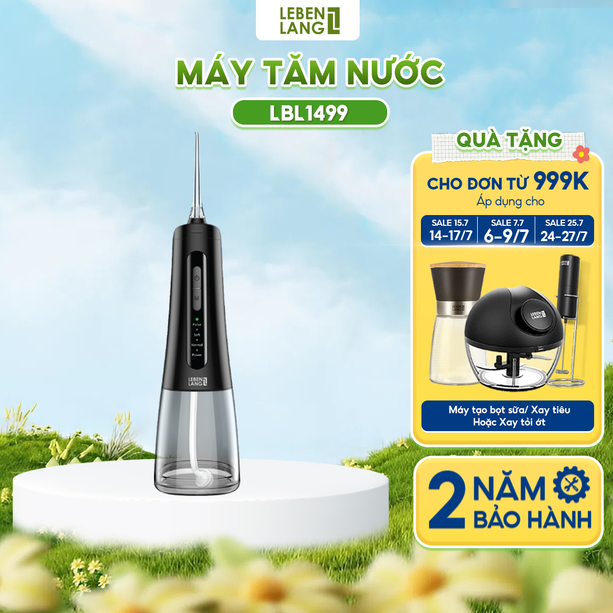 Máy tăm nước Lebenlang cầm tay LBT1499, IPX7 chống thấm nước 2000mah, 300ml, tích hợp pin, BH 2 năm