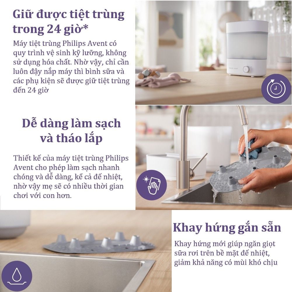 - Phong cách kiểu dáng thiết kế tối giản không chiếm dụng diện tích, đem lại sự tiện lợi tối đa cho người sử dụng, mà vẫn giữ được sự sang trọng nổi tiếng vốn thấy của thương hiệu Philips Avent