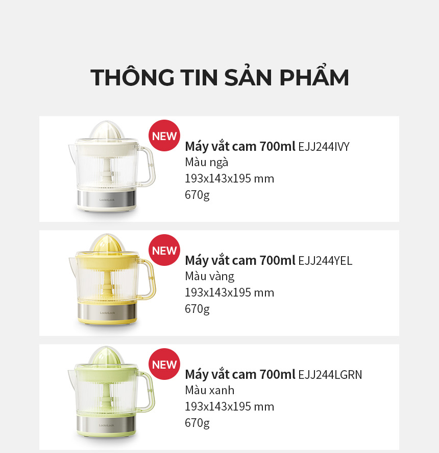 Máy Vắt Cam LocknLock Citrus Juicer EJJ244 40W 700ml, Hàng Chính Hãng, Xoay Ép Hai Chiều - JoyMall