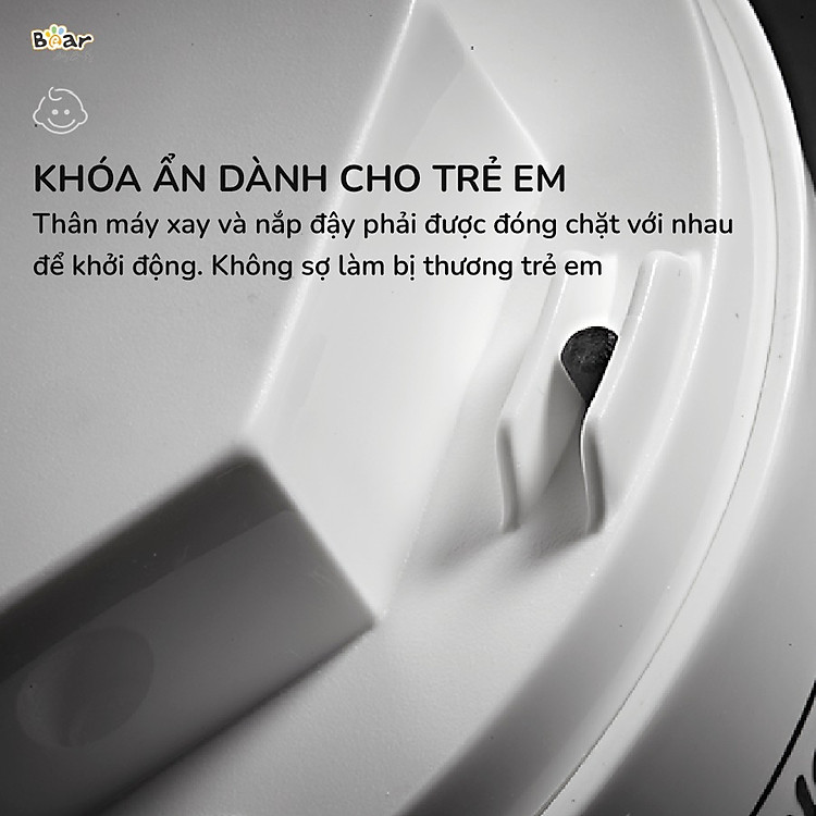 - Đảm bảo an toàn tuyệt đối khi sử dụng: Máy xay thực phẩm đa năng Bear 2L SB-MA02L được thiết kế khóa ẩn dành cho trẻ em. Muốn khởi động máy thì phải đóng chặt thân máy xay và nắp đậy với nhau trước. Khi sử dụng, chỉ cần thả tay thì động cơ sẽ ngay lập tức dừng lại. Vì vậy, bạn hoàn toàn có thể yên tâm về độ an toàn của máy xay đối với trẻ em trong gia đình. Bên cạnh đó, cốc xay làm bằng thủy tinh chịu nhiệt cao cấp, đảm bảo an toàn trong quá trình xay thực phẩm.