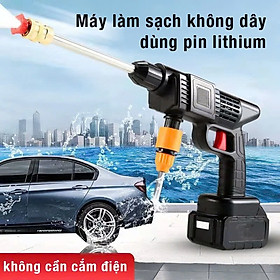 Máy rửa xe cầm tay cao áp chạy bằng pin sạc siêu tiện dụng, Máy rửa xe gia đình xe máy, Ô Tô 300W, Máy xịt rửa HD áp lực cao mạnh