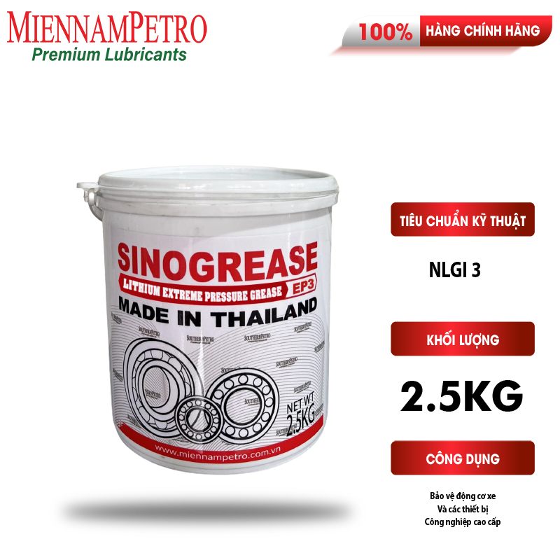 Mỡ Bôi Trơn MiennamPetro Sinogrease EP3 NLGI 3 2,5KG Bảo Vệ Ô Tô Công Nghiệp Cao Cấp