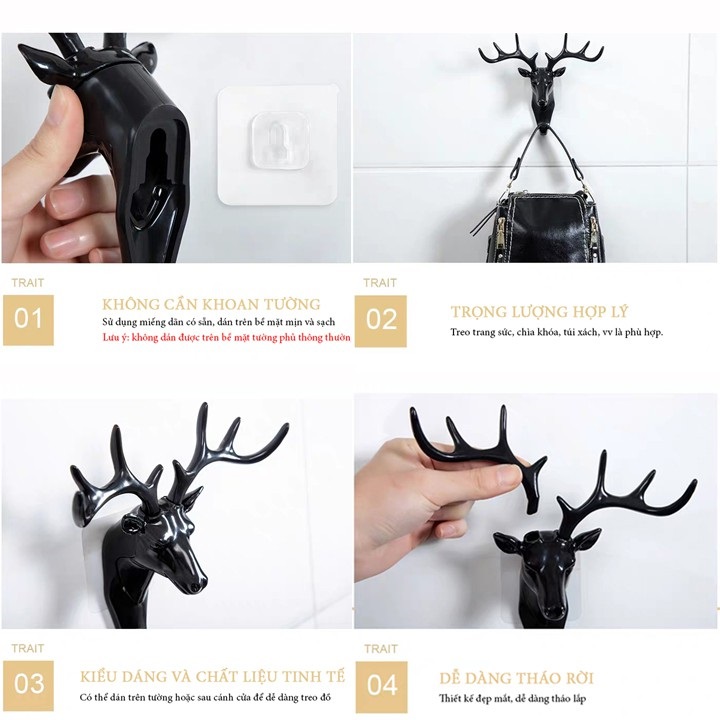 Móc dán tường treo đồ đa năng treo quần áo mũ chìa khóa decor trang trí nhà cửa hình đầu nai sừng hươu