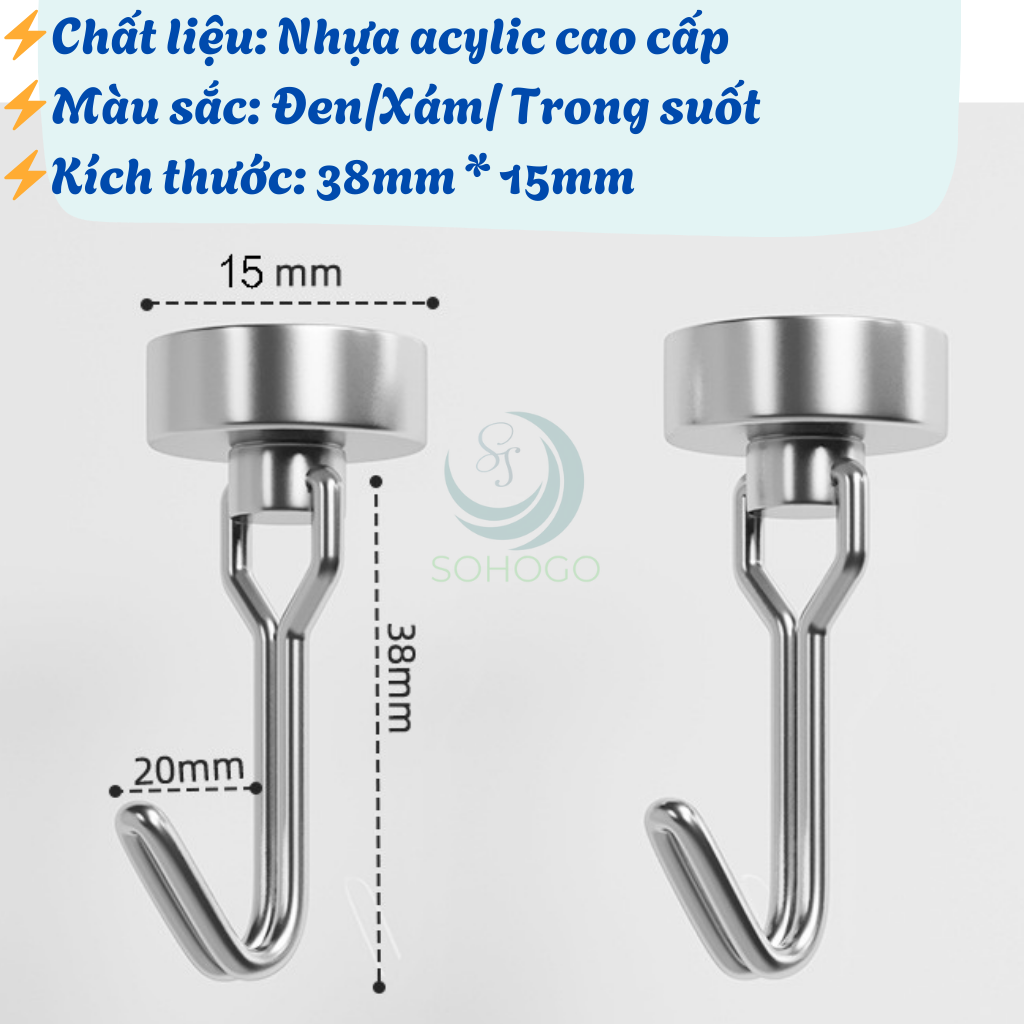 - Kích thước tổng thể: cao 4.2cm, móc dài 1.7cm, đầu nam châm đường kính 1.5cm, dày 0.5cm