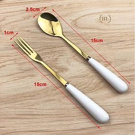COMBO CỐC KÈM 6 THÌA DĨA MẠ VÀNG CÁN SỨ HOÀNG KIM CAO CẤP