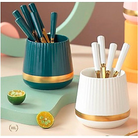 Set 6 Nĩa kèm Giỏ Sứ Bắc Âu Xanh Cổ Vịt Cao Cấp | Lẵng Sứ Xanh Cao Cấp kèm 6 nĩa inox cán sứ | Cốc Sứ Khung Ánh Sao