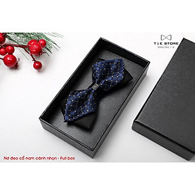 Nơ Đeo Cổ Nam cánh nhọn, Màu xanh đen chấm kẻ - Nơ chú rể, MC , tặng kèm hộp