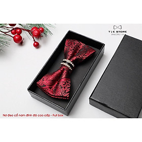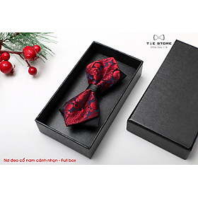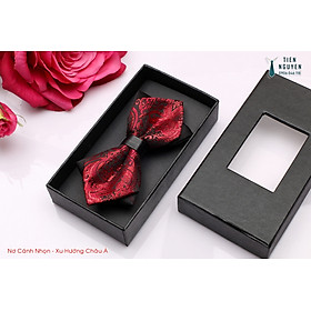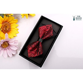 Nơ Đeo Cổ Nam 2 cánh, Màu đỏ mạn họa tiết - Nơ chú rể, MC , tặng kèm hộp