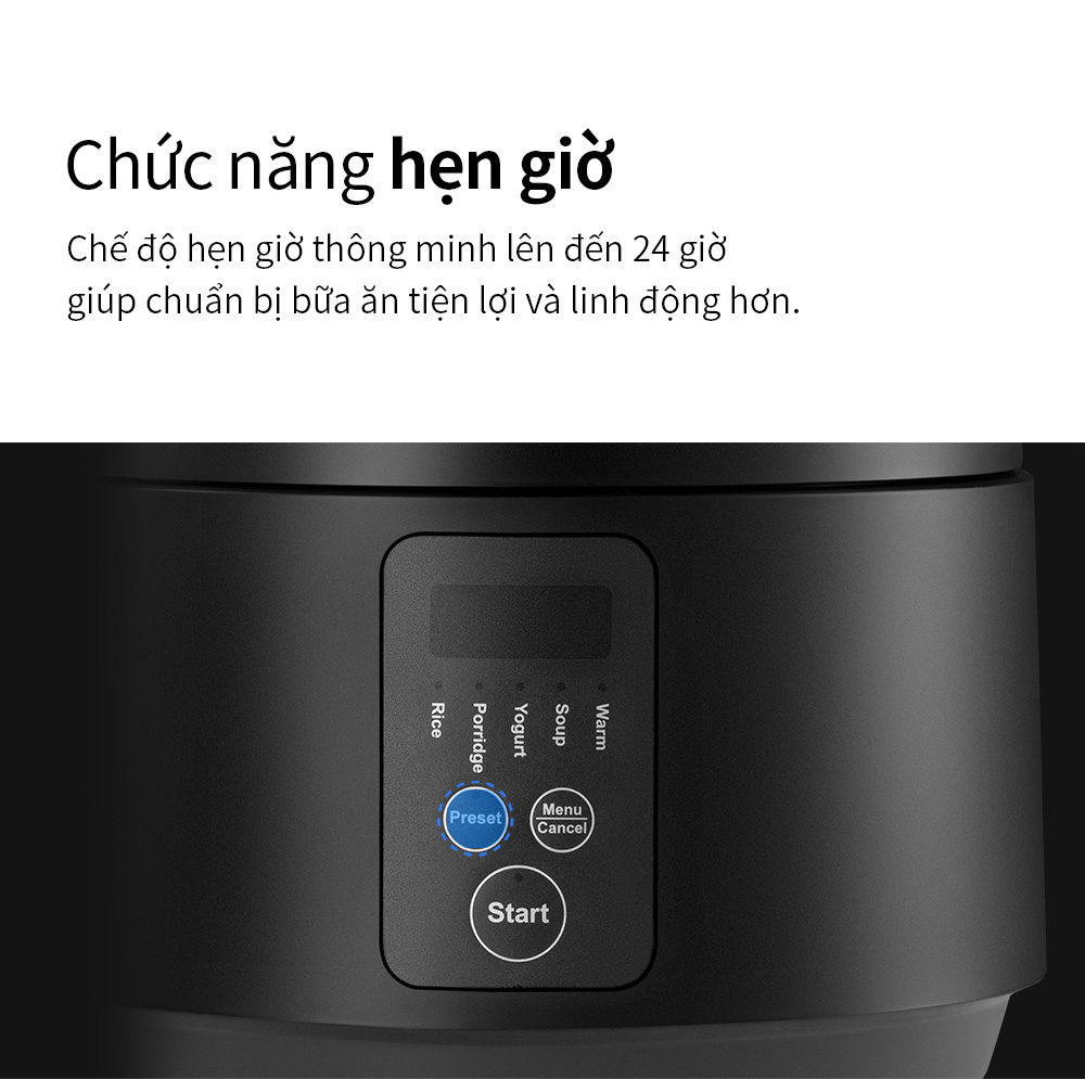 Chức năng hẹn giờ: Chế độ hẹn giờ thông minh lên đến 24 giờ giúp chuẩn bị bữa ăn tiện lợi và linh động hơn