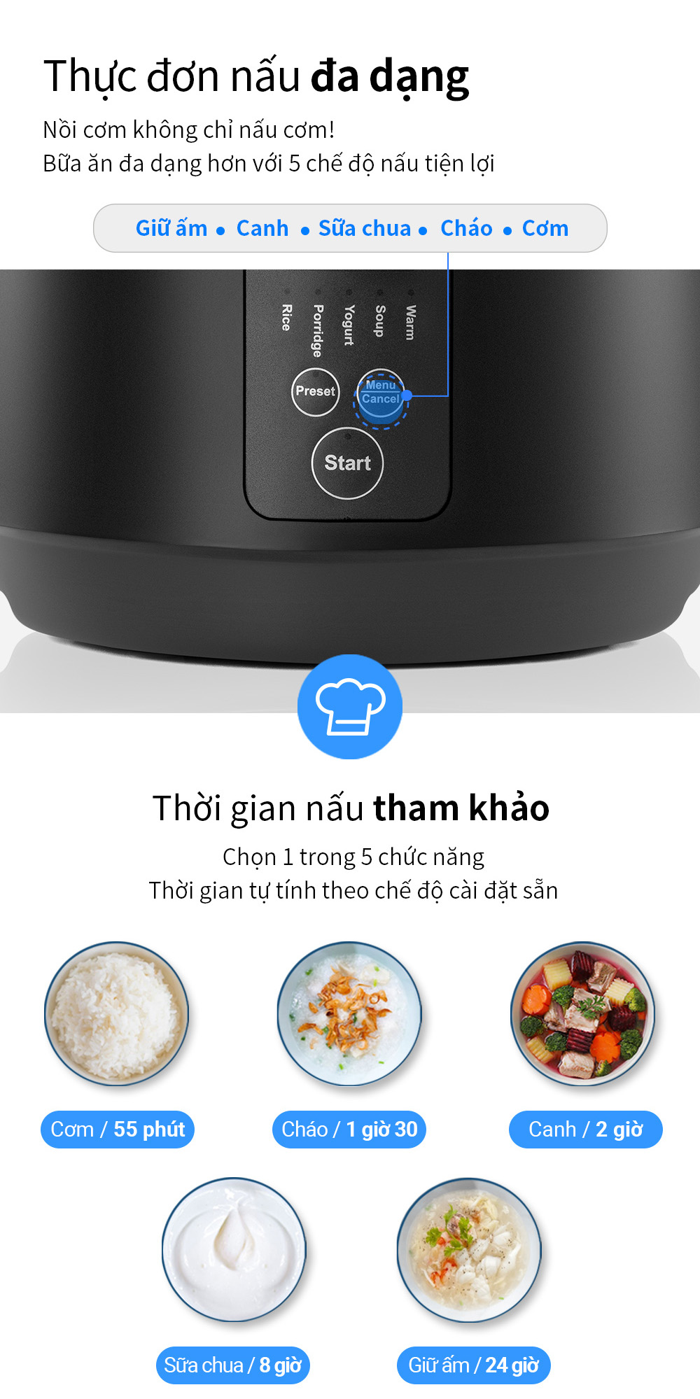 Thực đơn nấu đa dạng: Bữa ăn đa dạng với 5 chế độ nấu