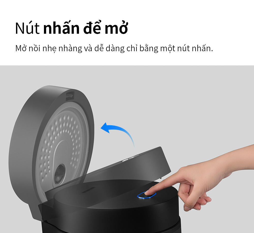 Nút nhấn để mở: Mở nồi nhẹ nhàng và dễ dàng chỉ bằng một nút nhấn.