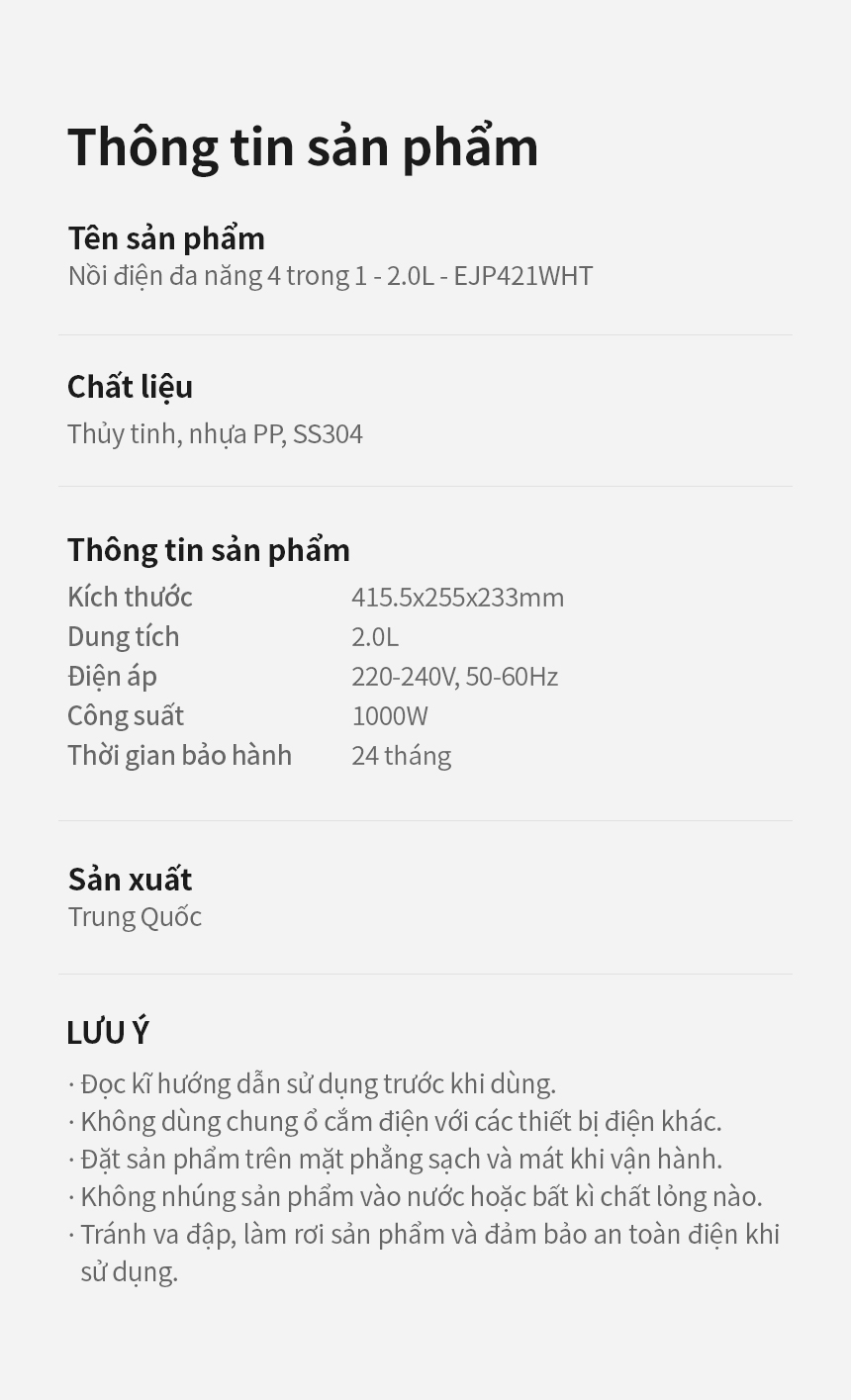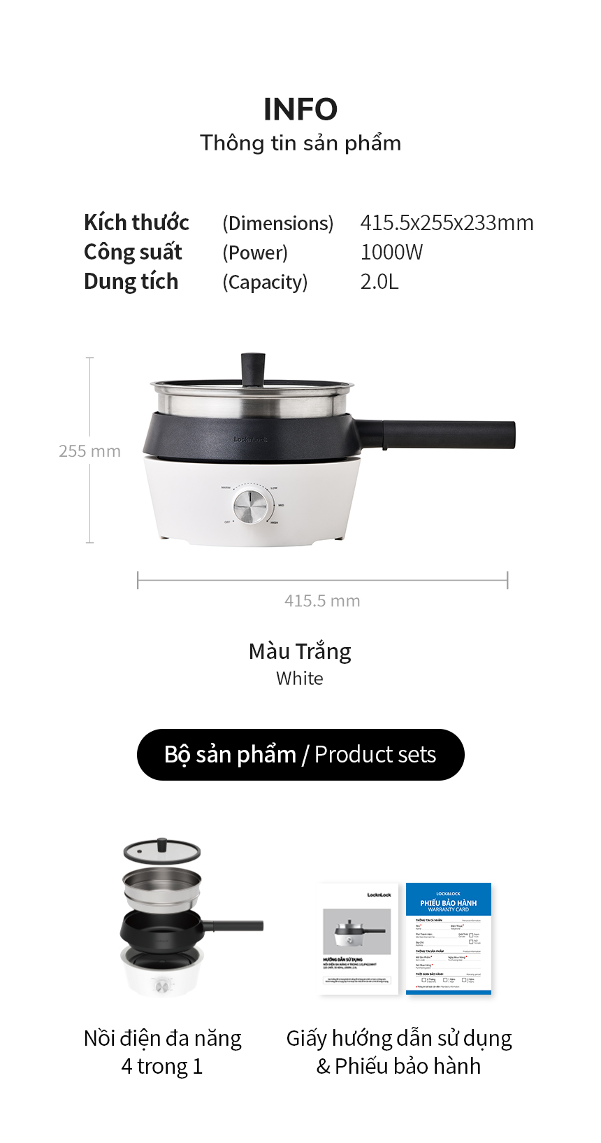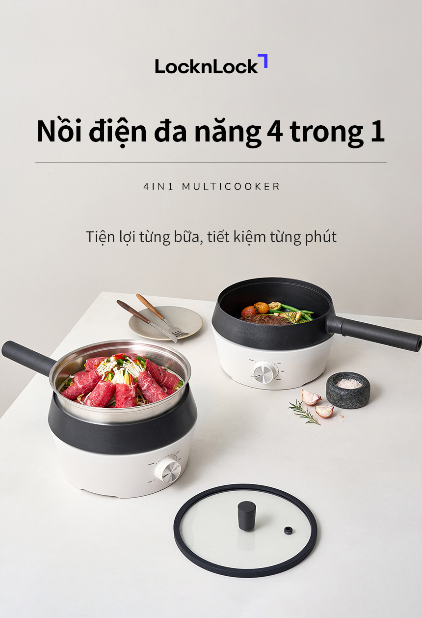 Nồi Điện Đa Năng 4 Trong 1 LocknLock 2L EJP421WHT, Hàng Chính Hãng, Nướng, Chiên, Lẩu, Hấp – JoyMall