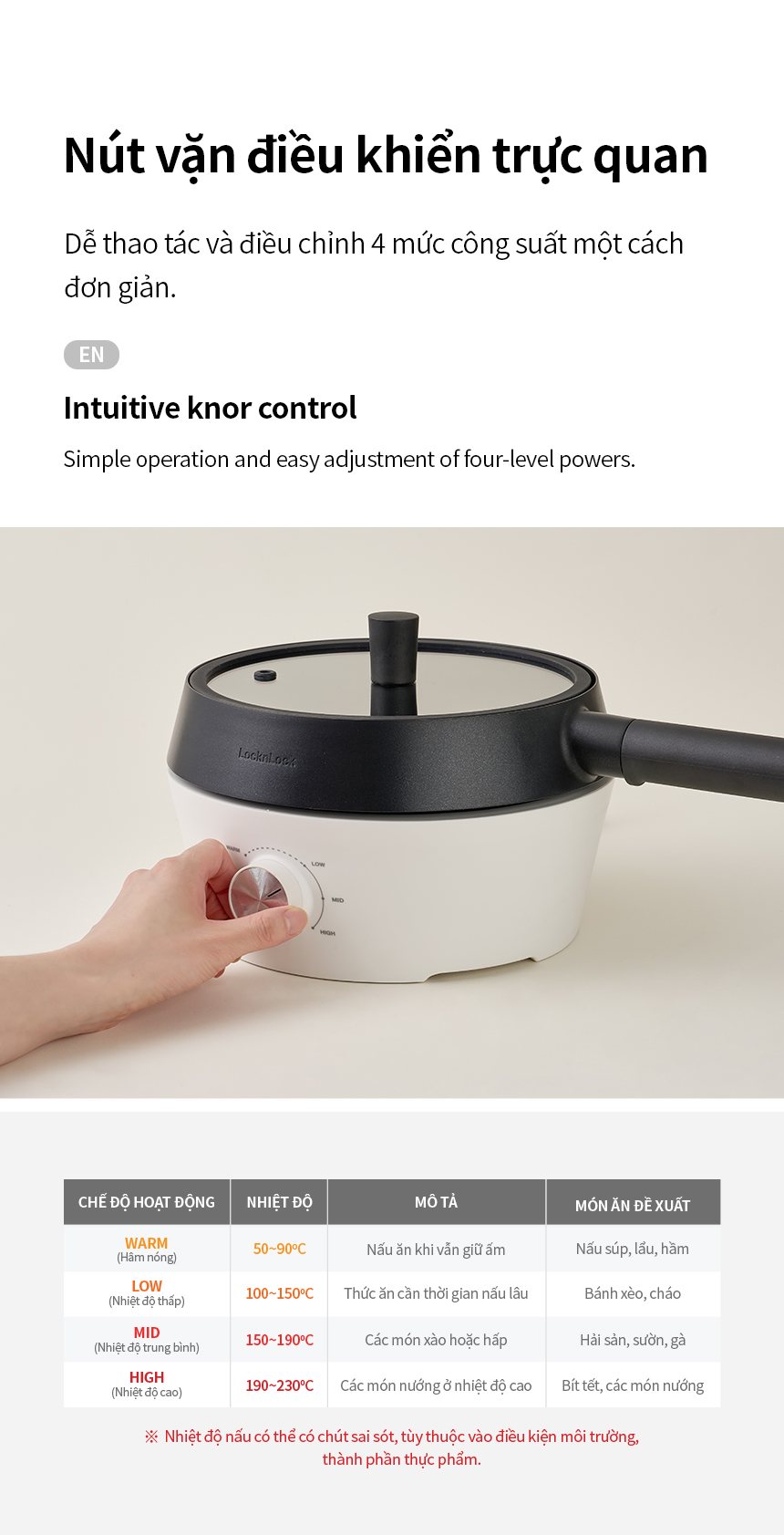 NÚM VẶN ĐIỀU KHIỂN TRỰC QUAN: Dễ thao tác và điều chỉnh 4 mức công suất một cách đơn giản.