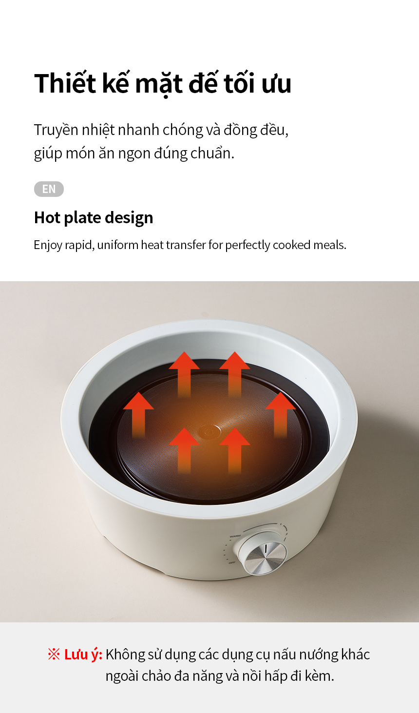 THIẾT KẾ MẶT ĐẾ TỐI ƯU: Truyền nhiệt nhanh chóng và đồng đều, giúp món ăn ngon đúng chuẩn.