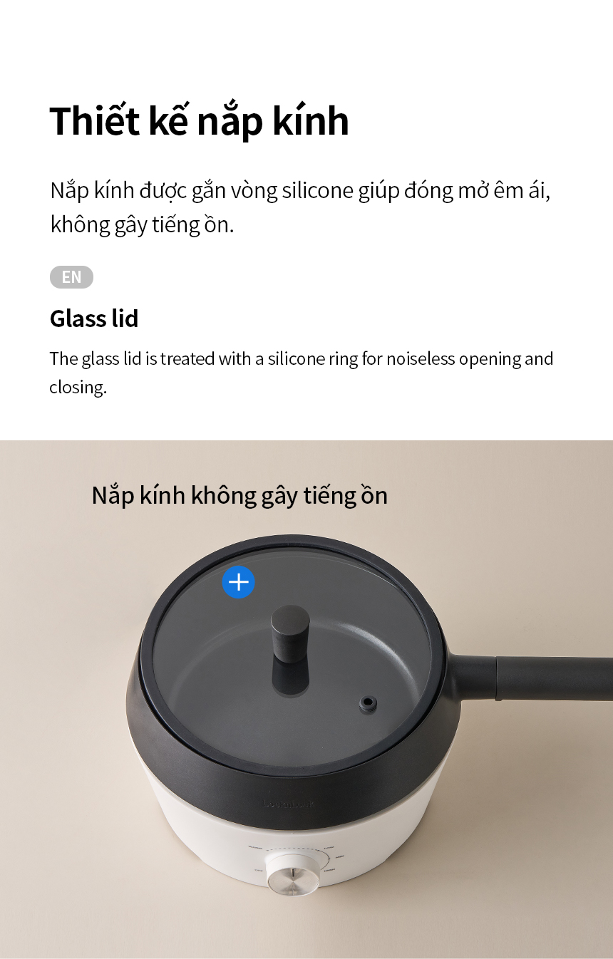 THIẾT KẾ NẮP KÍNH: Nắp kính được gắn vòng silicone giúp đóng mở êm ái, không gây tiếng ồn.