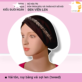 Nón hóa trị vải mềm mát, hút mồ hôi, bệnh nhân ung thư, chemo hat, nón trùm đầu [KIỂU ĐUÔI NGẮN-ĐEN VIỀN LEN]