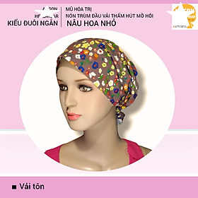 Nón hóa trị vải mềm mát, hút mồ hôi, bệnh nhân ung thư, chemo hat, nón trùm đầu [KIỂU ĐUÔI NGẮN-NÂU HOA NHỎ]